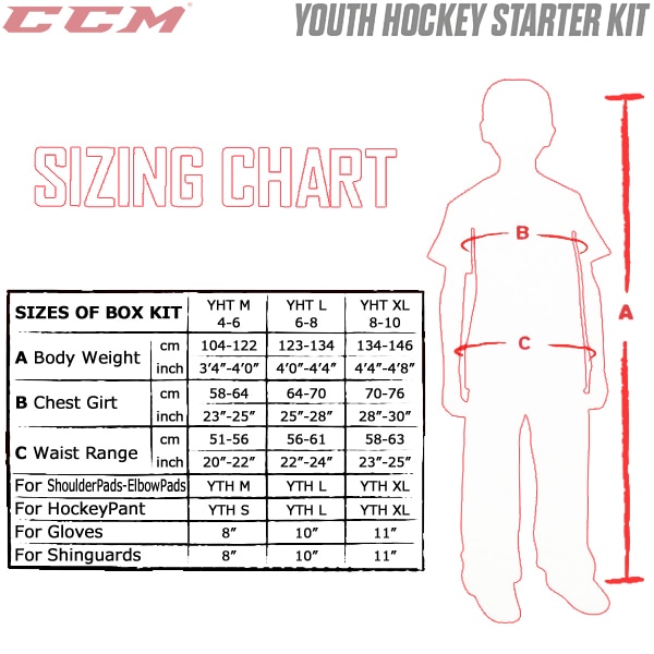 これからアイスホッケーを始めるお子様のための6点入りスターターキットです。