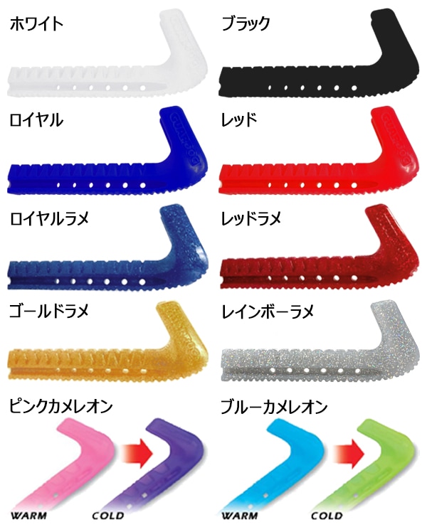スケートを履いたままリンクサイドを歩くときに、大切なエッジを保護するハードタイプのエッジカバー。