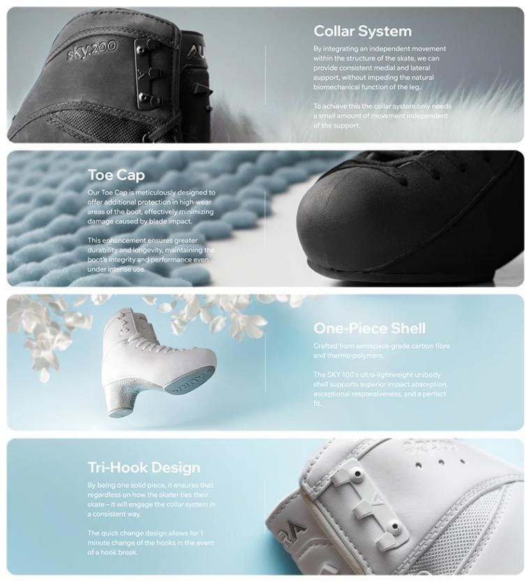 足首部分は、曲がりながらも強度を損なわない独自のカラーシステムにより、従来のスケート靴と比較して耐久性が向上します。