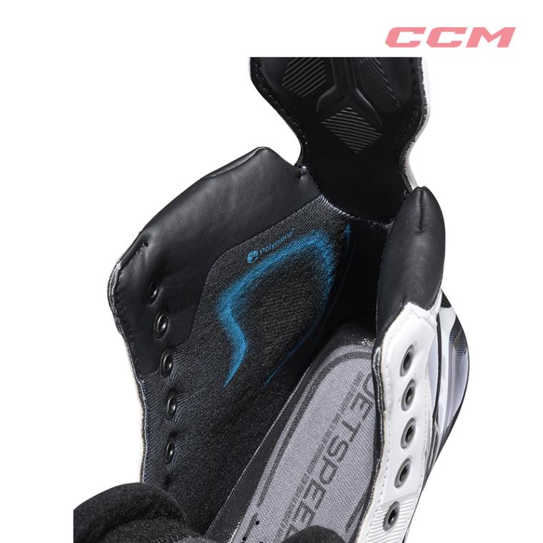 CCM独自の高い技術によって生み出されたワンピース構造のブーツが足をしっかりとホールドし、加速時のダイレクトなパワー伝達とより速いストライドを実現。